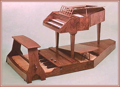 A pedal-harpsichord, that is, a harpsichord with an organ-type pedal-board, would have been found in the home of most German organists during the baroque period. Organ practice in churches was difficult; some willing collaborator had to be found, and paid, to pump the organ, and the church could be very cold in winter. Additionally, several present-day organists have confirmed that practice on the pedal-harpsichord is infinitely more demanding in terms of accuracy and precision than on the organ. Bach wrote his Six Trio Sonatas to improve the pedal technique of his son Wilhelm Friedemann. The manuscript of Bach's Passacaglia and Fugue, which according to Albert Schweizer vanished in the mid-1800's, was apparently headed Cembalo e pedale, clearly indicating performance on the pedal-harpsichord. Jakob Adlung, in Musica Mechanica Organoedi (1768), describes clavichords and harpsichords with separate pedals like an organ pedal-board. Bach possessed three of these, and according to Forkel, Bach "liked to improvise on a two-manual clavier with pedal". Our illustration shows an instrument currently in production by the firm of J.C. Neupert.